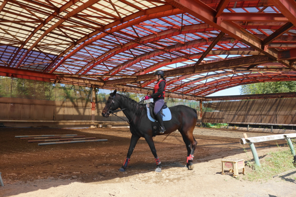 (軽速歩は馬のリズムに合わせて、立ったり座ったりして馬の反動を吸収します。)